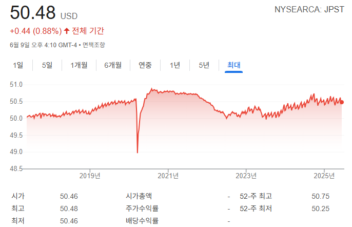 JPST (JPMorgan Ultra-Short Income ETF) 최근 주가