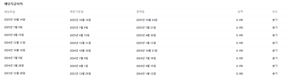 - 분기 배당 0.19달러(연 약 7%대 배당수익률)