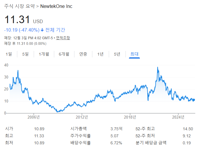 - 배당 및 자사주 매입: 보통주 주당 $0.19의 분기 배당을 지속적으로 공시하고 있으며 (연간 배당수익률 약 7%대), 2025년 12월에는 자사주 약 10 만 670주를 평균 가격 $10.20에 매입하는 등 주주 가치 제고 활동을 병행하고 있습니다. (근거: Newtek Business Services, Comtex News)